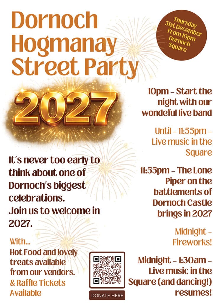 Join us for the annual Hogmanay Street Party! For years people have flocked from all over to experience a true Scottish Hogmanay in Dornoch, and we can’t wait to bring it to you again!