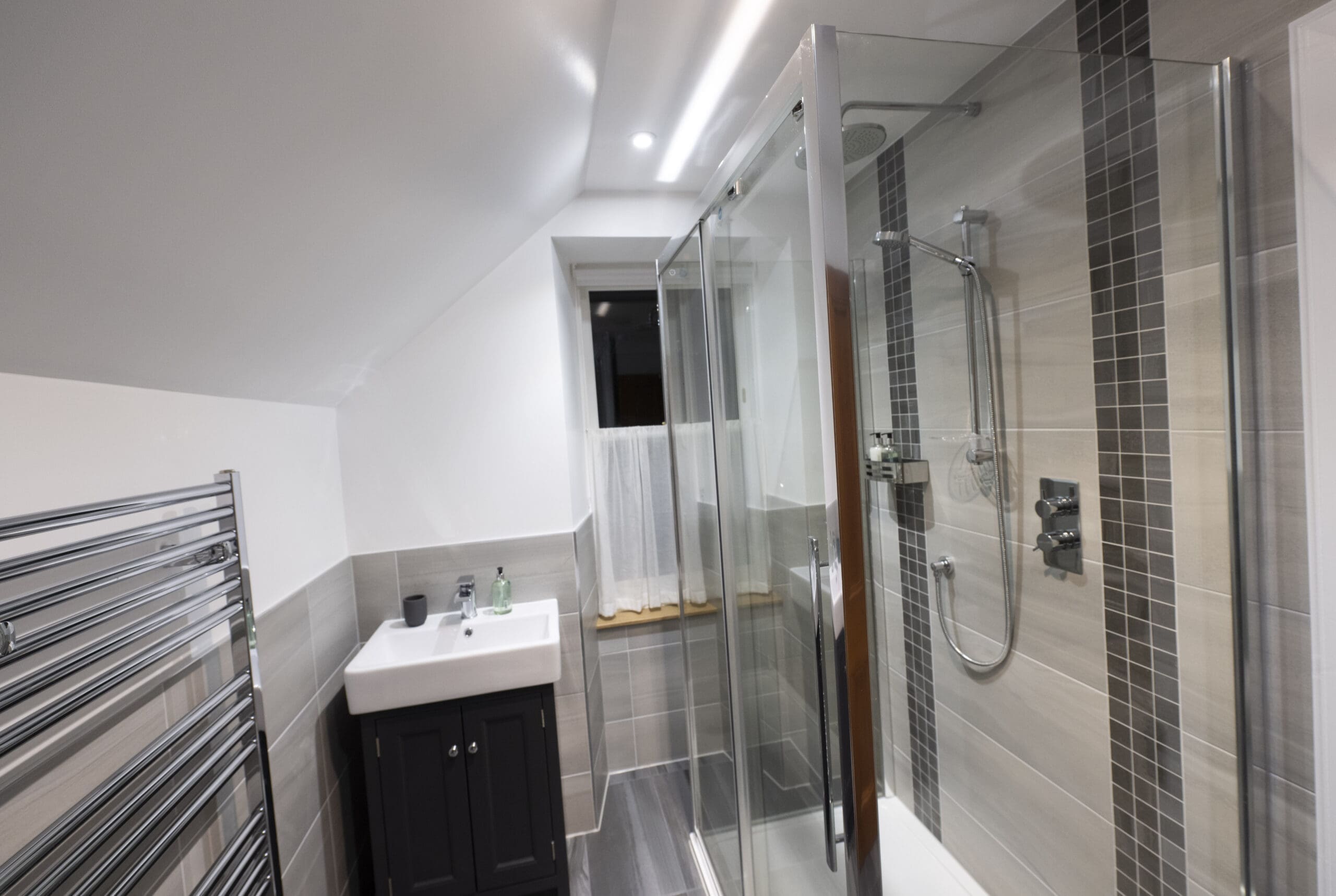 - 4 large bedrooms with Hypnos super-sized king beds – able to separate into single beds (8 in total); all bedrooms have en-suite bathrooms with heated floors; TVs in each room