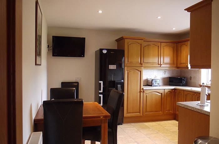 The house comprises of a sunny sitting room looking down the 16th & 17th fairways, comfortable seating and a 42″ flat screen TV with Sky (Full Sports package).